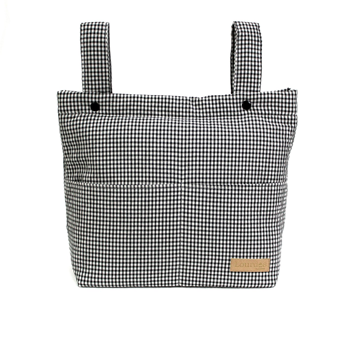 Bolso mediano paseo ( 33cm de ancho, 28cm de alto) . Asas cortas verticales para colgar en la silla. Cierre con cremallera y 2 bolsillos exteriores delanteros, prácticos para tener lo esencial a mano.
