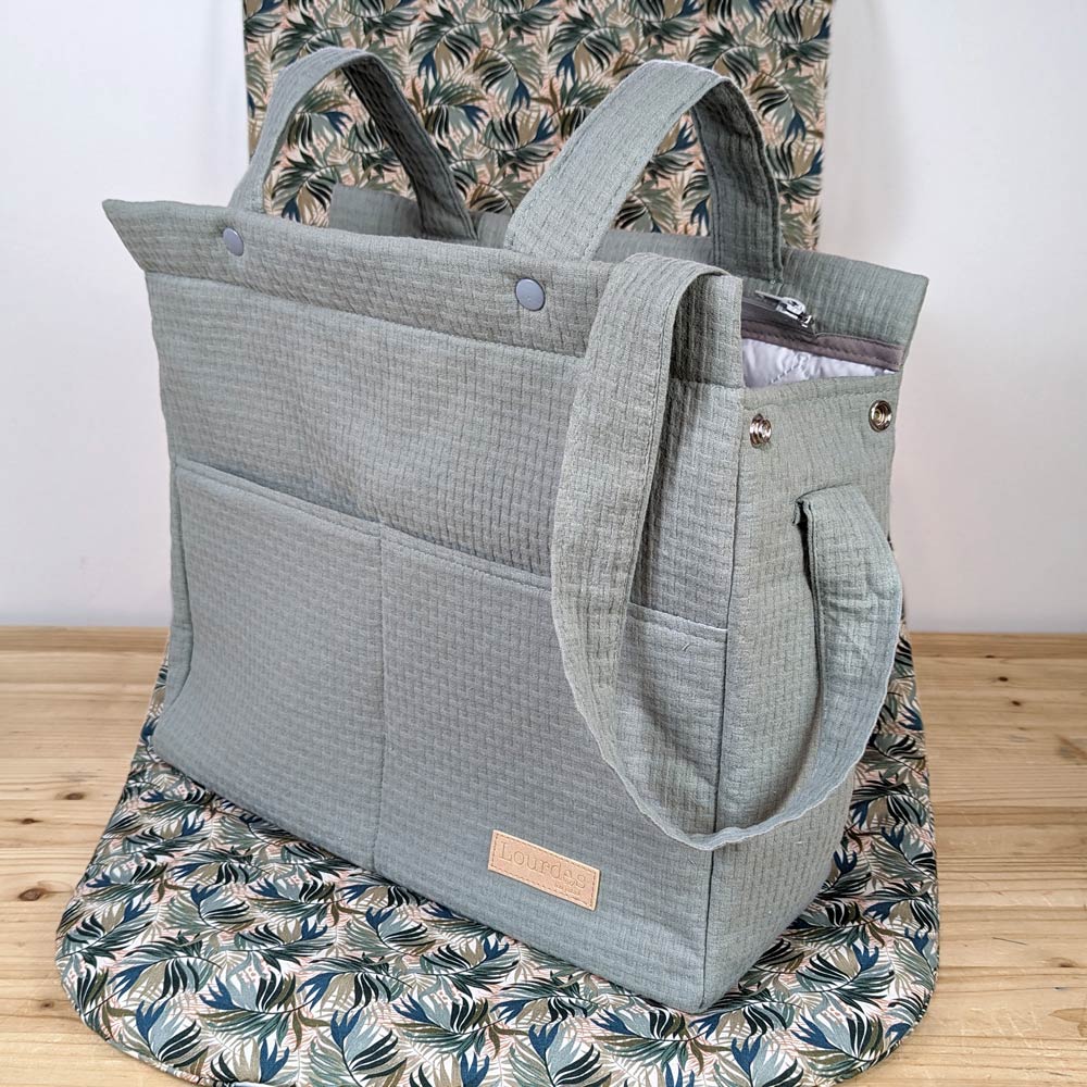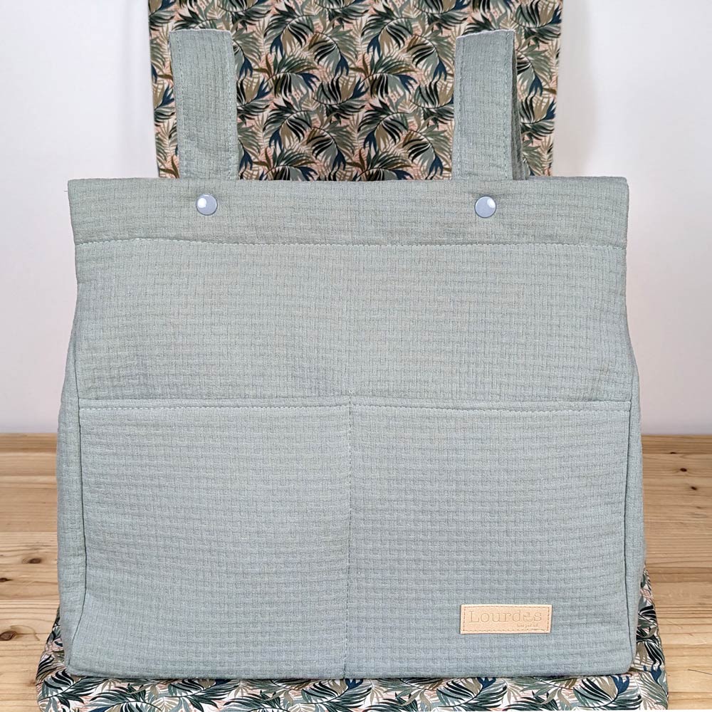 Bolso Panera paseo( 33cm de alto, 38cm de ancho y 12cm de fondo) en tejido fácil de lavar en la lavadora . Asas cortas verticales para colgar en la silla y una asa larga para llevar al hombro. Cierre con cremallera que se abre por completo para mayor comodidad. Dos bolsillos interiores y 2 bolsillos exteriores delanteros, prácticos para tener lo esencial a mano.