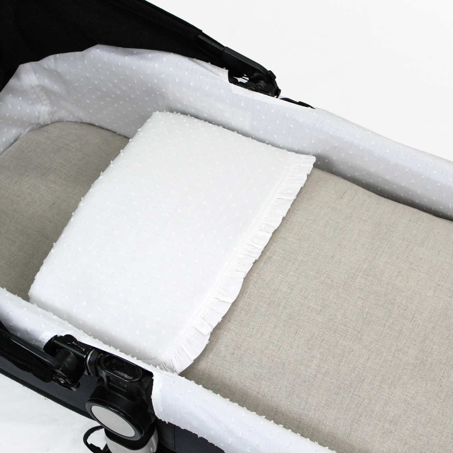 Saco para capazo, va cerrado con una cremallera a los dos lados, que fácilmente se pueden soltar. Los días de calor puedes utilizar solo la base.