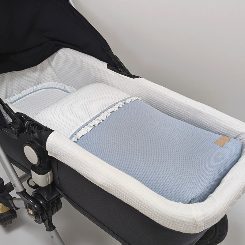 Saco para capazo. El saco se compone de colchoneta, tapa y almohada/salvababas.  Cerrado con una cremallera a los dos lados, que fácilmente se pueden soltar por completo. Los días de calor puedes quitar la tapa y utilizar solo la colchoneta. El relleno no es extraíble. Los interior de capazo/cubre capazos, no van incluidos, pero los podéis encontrar y hacer a vuestro gusto desde el apartado de » para el capazo» y «interiores de capazo».