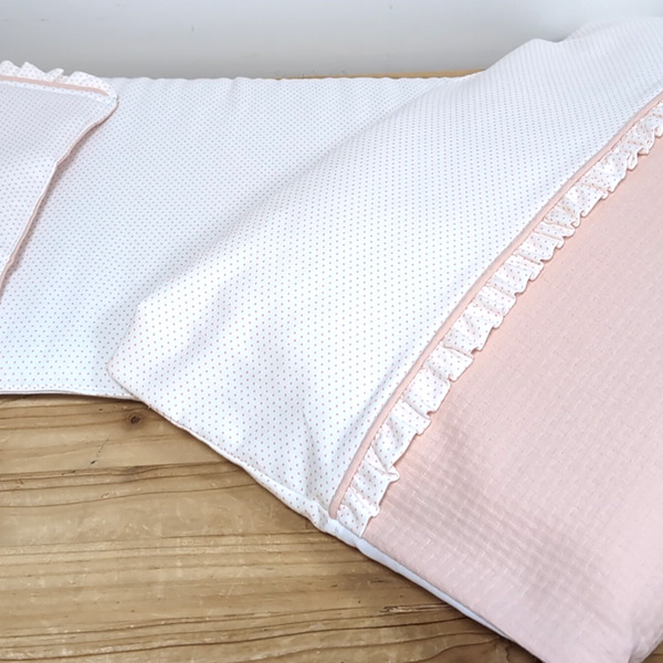Colchoneta y Colcha Adoquines rosa minimotas