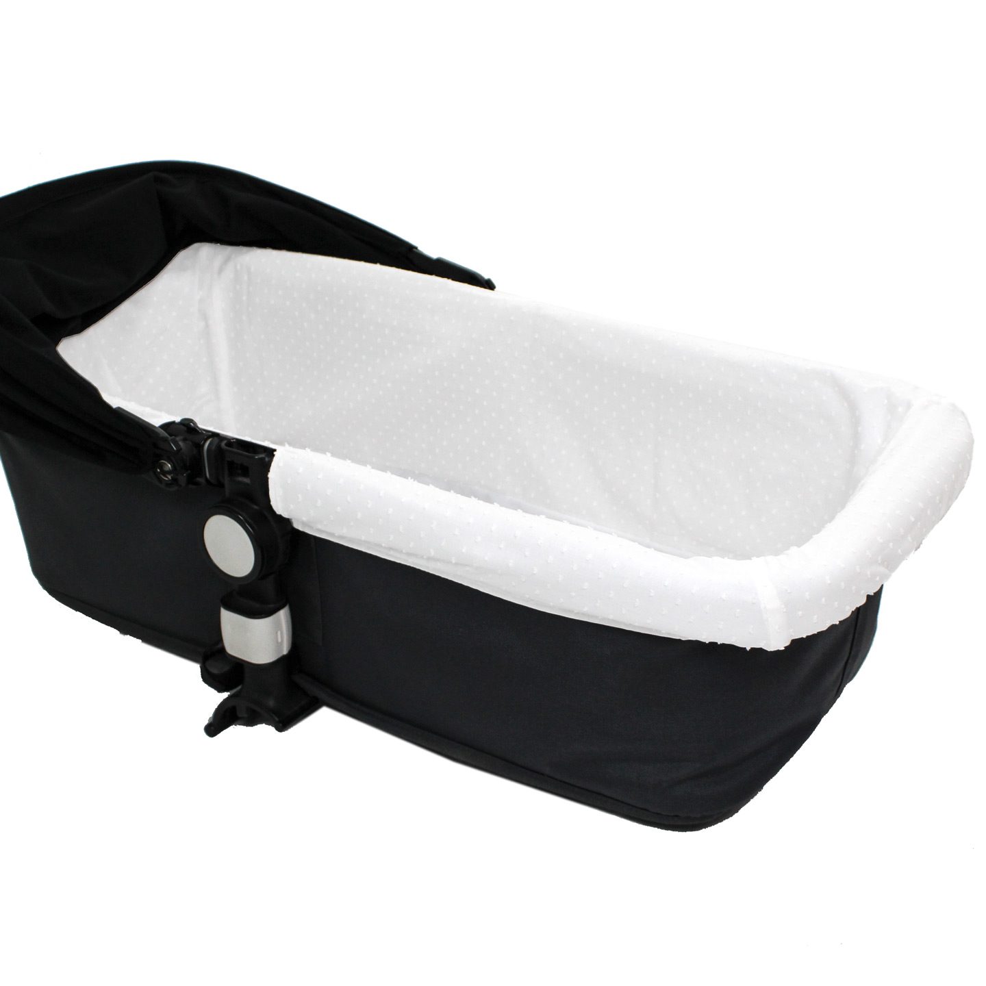 Interior de capazo para cubrir las paredes interiores del capazo, adaptado a tu modelo de silla.( no incluye bajera para colchón). Acolchonado fino y siempre los hacemos con vuelta en la zona de los pies. Según el modelo de capazo, por motivos estructurales, la zona de la cabeza seria sin vuelta. Este se coloca por debajo de la colchoneta original del capazo.