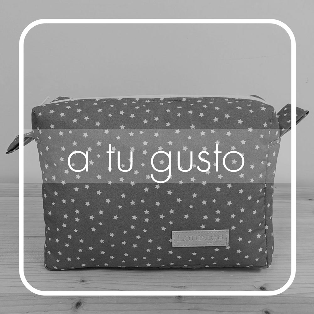 Neceser de tela con interior impermeable con cremallera de abertura amplia. Tamaño perfecto para llevar, por ejemplo: un cambiador, pañales y ropa de cambio.