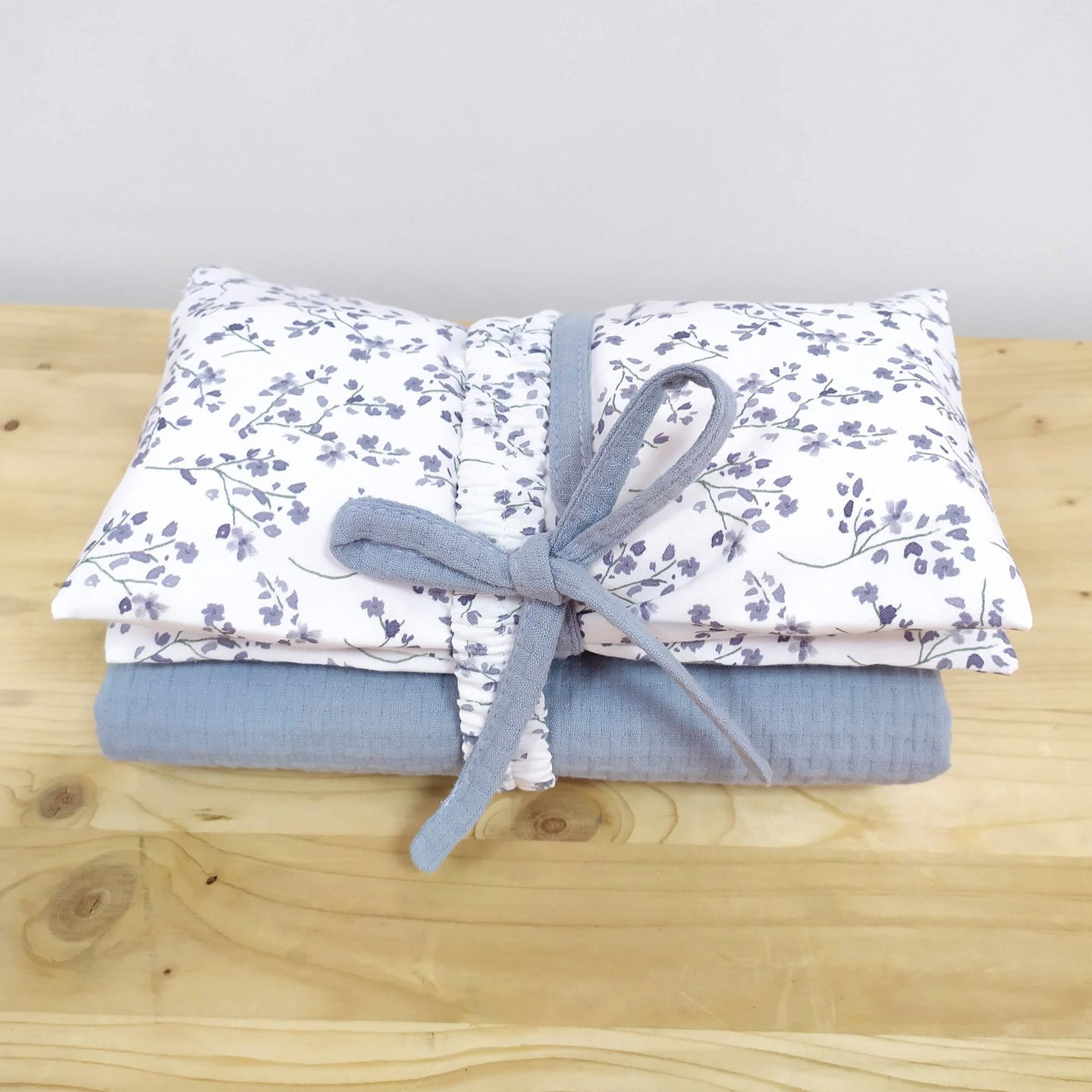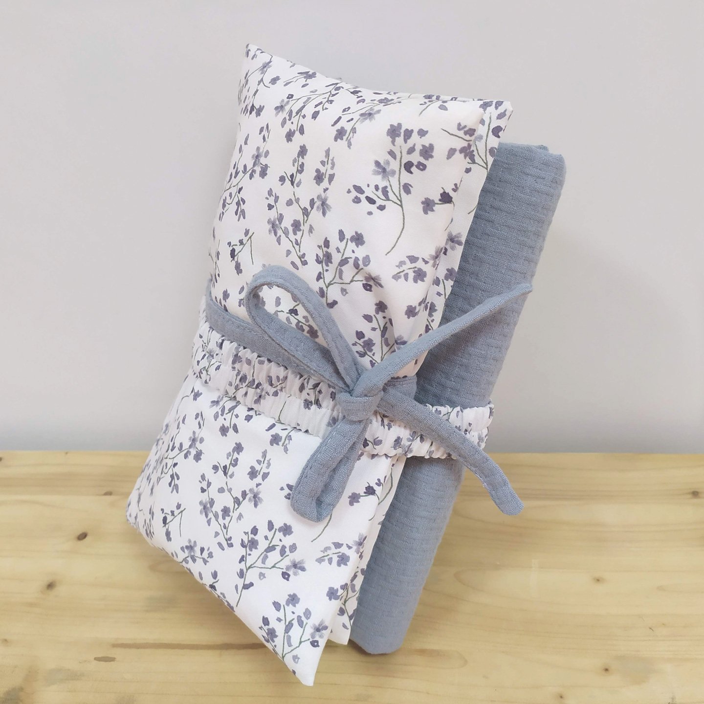 -Porta pañales. Con apartados para los pañales, toallitas y crema. Interior impermeable y exterior en 100% algodón.