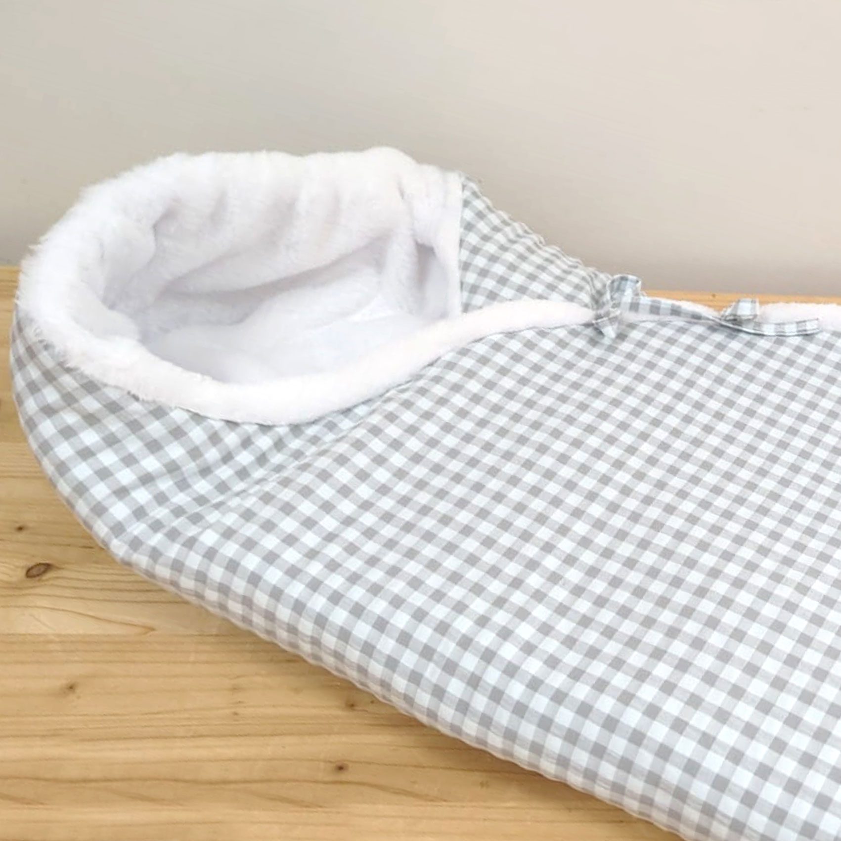 Arrullo para el capazo, moisés o para ternar al bebe en brazos. Peluche en el interior. Opciones de cierre con  dos botones  o lazos.