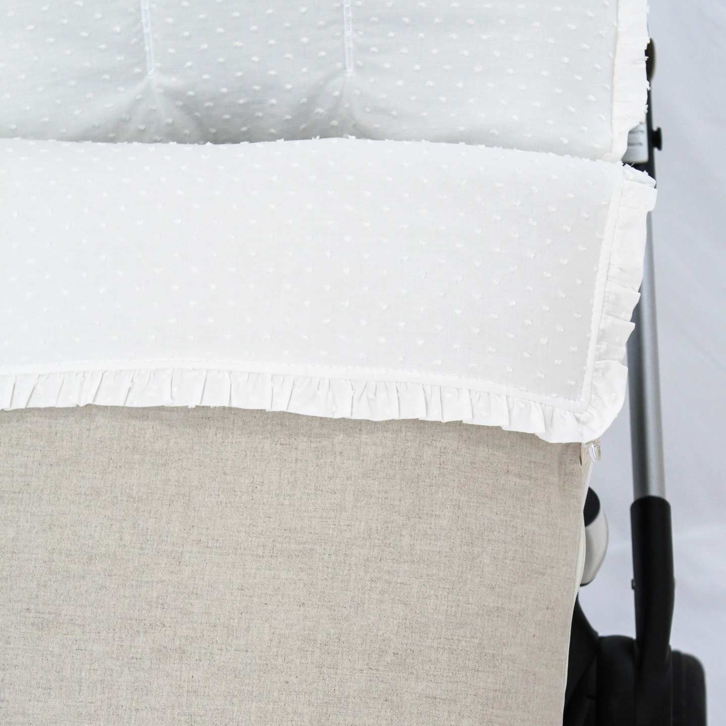 La tapa se desmonta por completo de la colchoneta/funda con sus dos cremalleras laterales. De esta manera, puedes utilizar solo la funda/colchoneta, como colchoneta de verano.